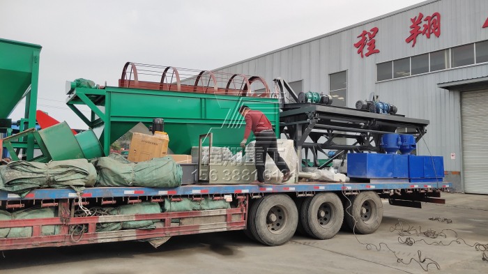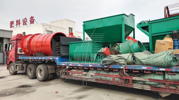 肥料生產(chǎn)設(shè)備廠家程翔重工本次發(fā)貨為年產(chǎn)5萬噸的豬糞有機肥加工成套設(shè)備,主要的有機肥生產(chǎn)設(shè)備有:液壓槽式翻堆機、鏟車喂料機、半濕物料粉碎機、臥式攪拌機、平模擠壓造粒機、滾筒烘干機、冷卻機、滾筒篩分機、自動包裝秤等等。由于肥料加工設(shè)備較多,因此分為兩車裝貨。