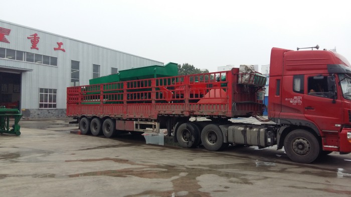 查看 > 20 2020/11由于該豬糞秸稈有機(jī)肥料生產(chǎn)線產(chǎn)量較大,因此分為多車裝置運(yùn)輸。主要的豬糞加工設(shè)備有:大型秸稈粉碎機(jī)、履帶式翻堆機(jī)、臥式攪拌機(jī)、新型三合一造粒機(jī)、不同型號的滾筒篩分機(jī)以及多個型號的烘干冷卻設(shè)備。滾筒烘干設(shè)備風(fēng)頭以及風(fēng)機(jī)安置熱風(fēng)爐以及冷卻設(shè)備多個烘干冷卻設(shè)備履帶式翻堆機(jī)以及大型秸稈粉碎機(jī)二次烘干設(shè)備滾筒篩分機(jī)以及鏟車喂料倉本次豬糞秸稈有機(jī)肥料生產(chǎn)線工藝設(shè)計流程為:利用大型秸稈粉碎機(jī)將稻草秸稈等粉碎均勻,