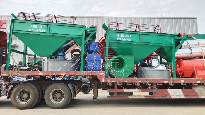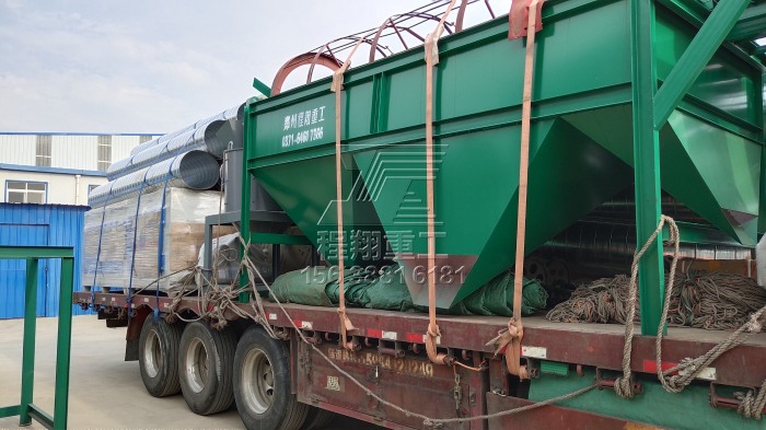 本次發(fā)貨的主要設(shè)備有:有機肥廠專用除臭罐、鏈式粉碎機、滾筒篩分機(3臺兩級篩分機以及1臺三級滾筒篩)、圓盤式造粒機(2臺)、有機肥濕法攪齒造粒機、柱狀擠壓造粒機以及自動包裝秤等等。(因車長不夠,有機肥液壓槽式翻堆機已由前天的小車發(fā)走。)