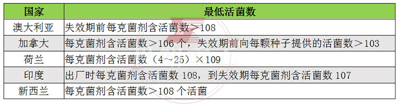 一些國家使用的根瘤菌菌劑的標(biāo)準(zhǔn)