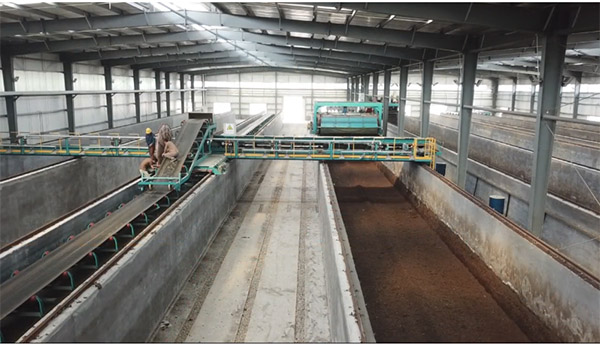 本次牛糞全套有機肥料設備生產(chǎn)工藝采用槽式好氧發(fā)酵,利用翻堆槽發(fā)酵既干凈又能最大化的利用有限的場地,增加糞便處理量。由于客戶對于顆粒有機質含量以及NPK有特殊要求,因此我們?yōu)榭蛻魧iT定制了一臺三倉的靜態(tài)配料系統(tǒng)。