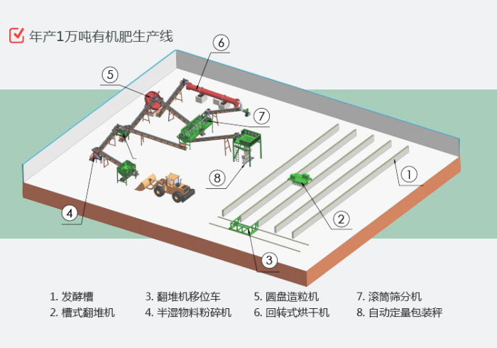 年產(chǎn)1萬噸的糞便有機肥生產(chǎn)線工藝流程