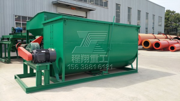 混合是指將固體糞便、輔料和各種調(diào)理劑按照預(yù)先設(shè)定的配方比例均勻混合的過程。對原料進(jìn)行預(yù)混合,可以使堆體內(nèi)各處均達(dá)到要求的碳氮比,確保微生物存活繁衍。根據(jù)被混合物料的性質(zhì),宜采用雙軸無重力式臥式混合機(jī)。該機(jī)臥式筒體內(nèi)裝有雙軸旋轉(zhuǎn)反向的槳葉,槳成一定角度將物料沿軸向、徑向循環(huán)翻攪,使物料迅速混合均勻。減速機(jī)帶動軸的旋轉(zhuǎn)速度與槳葉的結(jié)構(gòu)會使物料重力減弱,即使物料有比重、粒徑的差異,在交錯布置的攪拌葉片快速劇烈的翻騰拋灑下,也能達(dá)到很好的混合效果。如果該機(jī)能根據(jù)原料性質(zhì)自動控制混合時(shí)間,就能取得更好的效果和效率。