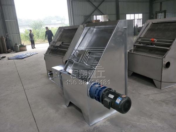 堆肥處理的原料是固體糞便。固體糞便的來源為干清糞和通過固液分離方法從“水泡糞”中分離出的固體物。要實(shí)現(xiàn)固液分離,應(yīng)用最廣泛、分離效果最好的是機(jī)械分離。機(jī)械分離設(shè)備可分為篩分分離、離心分離、壓濾分離和螺旋擠壓分離4種類型。篩分分離機(jī)械:用于畜禽糞便分離的篩分機(jī)械主要有斜板篩和振動篩。篩條截面形狀為楔形的斜板篩,用于糞便分離具有結(jié)構(gòu)簡單、不堵塞等特點(diǎn)。但固體物質(zhì)去除率較低,一般小于25%。