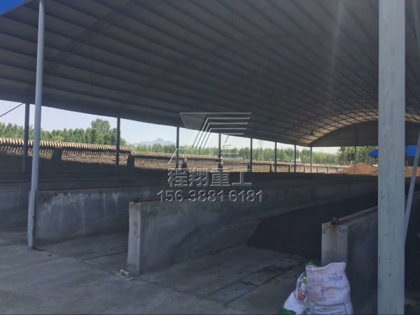 ④移動翻拋發(fā)酵加工法。該工藝是在溫室式發(fā)酵車間內(nèi),沿軌道連續(xù)翻耕動拌好菌劑的畜禽糞便,使其發(fā)酵、脫臭,牲畜禽糞便從發(fā)酵車間一端進入,出來時便為發(fā)酵好的有機肥,并直接進入干燥設(shè)備脫水,成為商品有機肥。該生產(chǎn)工藝充分利用光能、發(fā)酵熱,設(shè)備簡單,運轉(zhuǎn)成本低。其主要設(shè)備有翻拋機、溫室、干燥筒、翻斗車等。