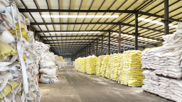 年產(chǎn)10萬(wàn)噸的復(fù)合肥生產(chǎn)線成品庫(kù)堆放: