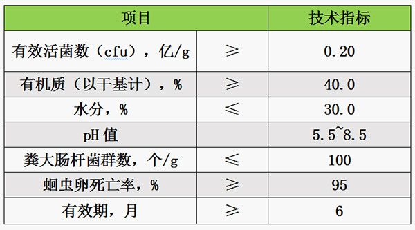 圖1 生物有機(jī)肥產(chǎn)品技術(shù)指標(biāo)要求