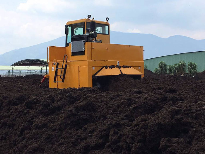 正在利用履帶翻堆機進行翻堆的豬糞