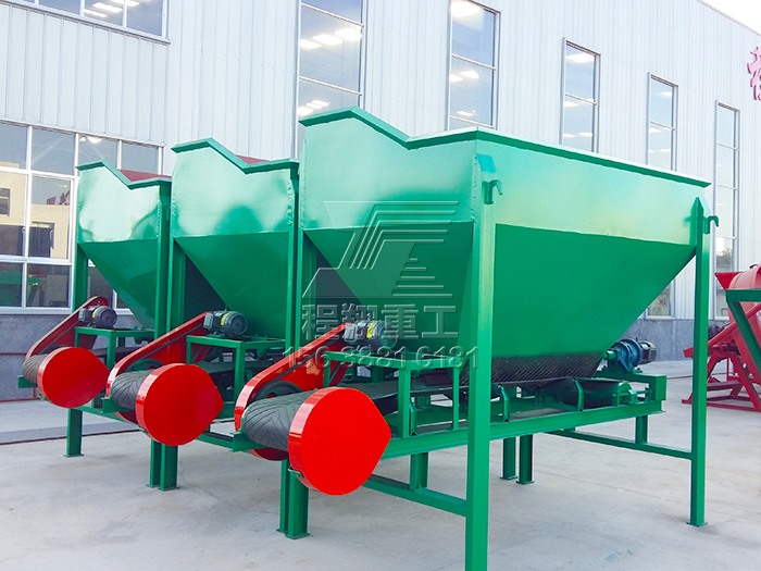 本次牛糞全套有機(jī)肥料設(shè)備生產(chǎn)工藝采用槽式好氧發(fā)酵,利用翻堆槽發(fā)酵既干凈又能最大化的利用有限的場地,增加糞便處理量。由于客戶對于顆粒有機(jī)質(zhì)含量以及NPK有特殊要求,因此我們?yōu)榭蛻魧iT定制了一臺三倉的靜態(tài)配料系統(tǒng)。
