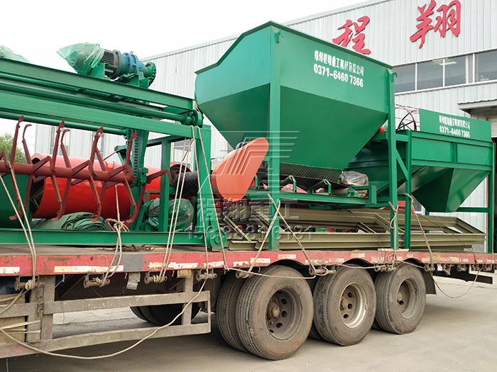 查看 > 20 2020/11由于該豬糞秸稈有機(jī)肥料生產(chǎn)線產(chǎn)量較大,因此分為多車裝置運(yùn)輸。主要的豬糞加工設(shè)備有:大型秸稈粉碎機(jī)、履帶式翻堆機(jī)、臥式攪拌機(jī)、新型三合一造粒機(jī)、不同型號的滾筒篩分機(jī)以及多個(gè)型號的烘干冷卻設(shè)備。滾筒烘干設(shè)備風(fēng)頭以及風(fēng)機(jī)安置熱風(fēng)爐以及冷卻設(shè)備多個(gè)烘干冷卻設(shè)備履帶式翻堆機(jī)以及大型秸稈粉碎機(jī)二次烘干設(shè)備滾筒篩分機(jī)以及鏟車喂料倉本次豬糞秸稈有機(jī)肥料生產(chǎn)線工藝設(shè)計(jì)流程為:利用大型秸稈粉碎機(jī)將稻草秸稈等粉碎均勻,